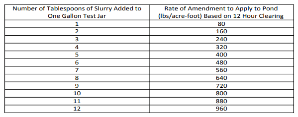 - Next, add different amounts of the gypsum slurry to each of your 4 test containers. Allow the jars to sit undisturbed for 12 hours. The minimum amount, which clears the water in the test containers, will be used as a basis to calculate the amount of gypsum you will need to clarify your pond.